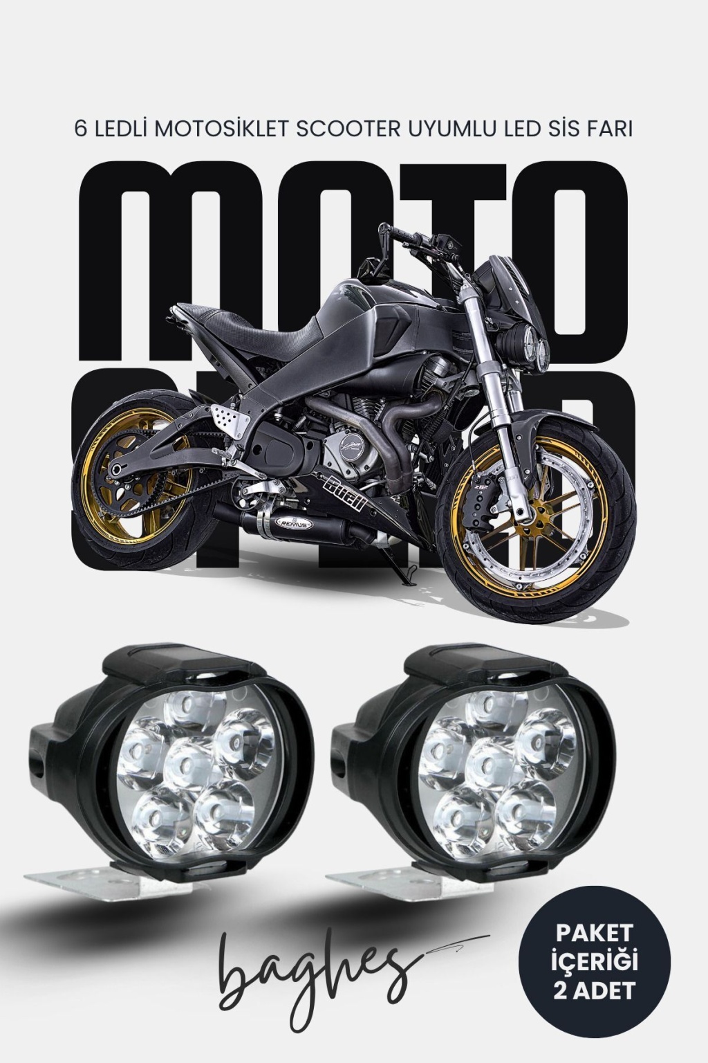 Bu 2’li motosiklet LED sis farı seti, 6 güçlü LED yapısıyla hem çakar hem düz modda çalışır. 12V sistemlerle uyumlu yapısı sayesinde motosiklet, scooter ve ATV’lerde kolayca kullanılabilir. Kompakt ve sağlam tasarımıyla zorlu hava koşullarına dayanıklıdır.