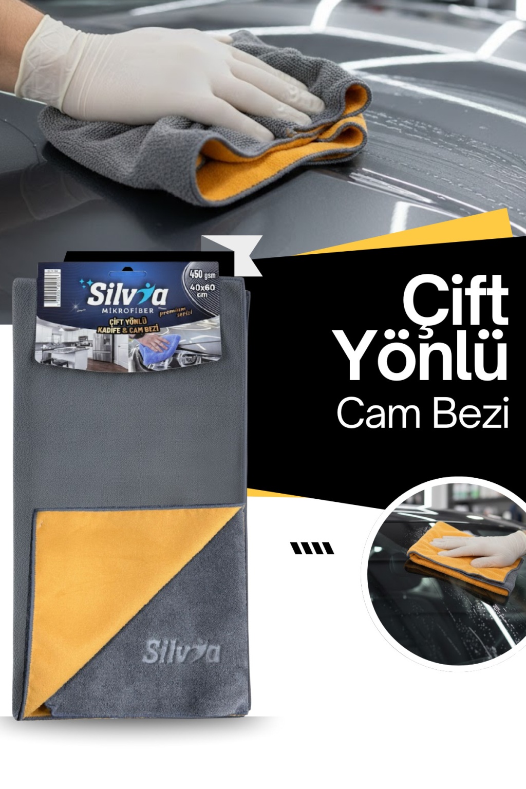 Hassas araç boyası ve cam yüzeylerde çizmez, tüy (hav) bırakmaz.