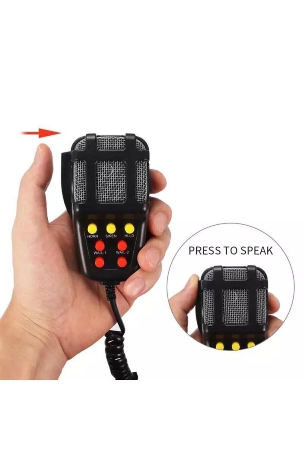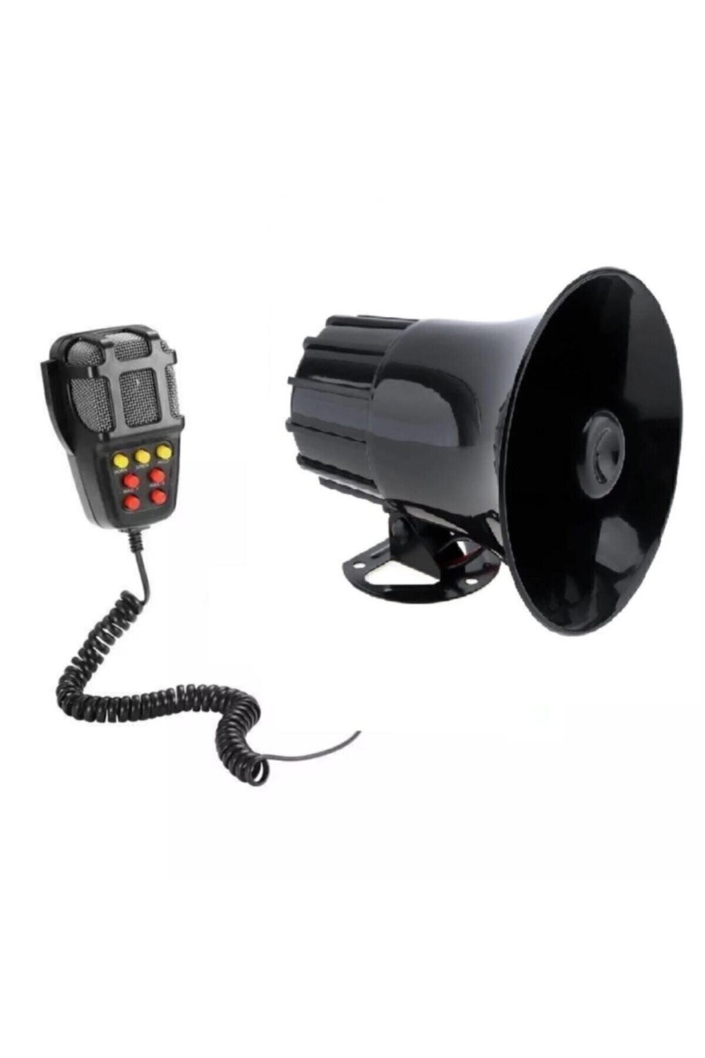 Mikrofonlu elektronik siren Temiz ve yüksek ses verir; Artı ve eksi uçları bağlayın ve mikrofonun düğmelerine basın; 7 butonunda 7 ayrı siren tonu; Yandaki mandal sayesinde anons yapabilme Mikrofon ünitesi soketlidir; Dilendiğinde soketinden çıkartılabilir; 12v ile çalışır; Ölçüler Ağız 12cm Yükseklik 15cm;