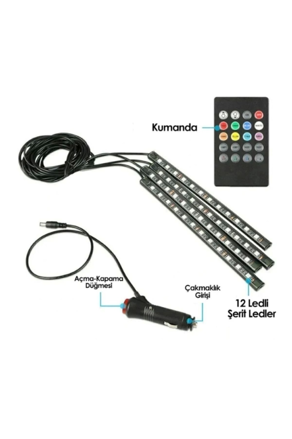 4 Parçalı Uzaktan Kumandalı Araç Içi Ayak Altı Ledi Atmosfer Işık 36 Led