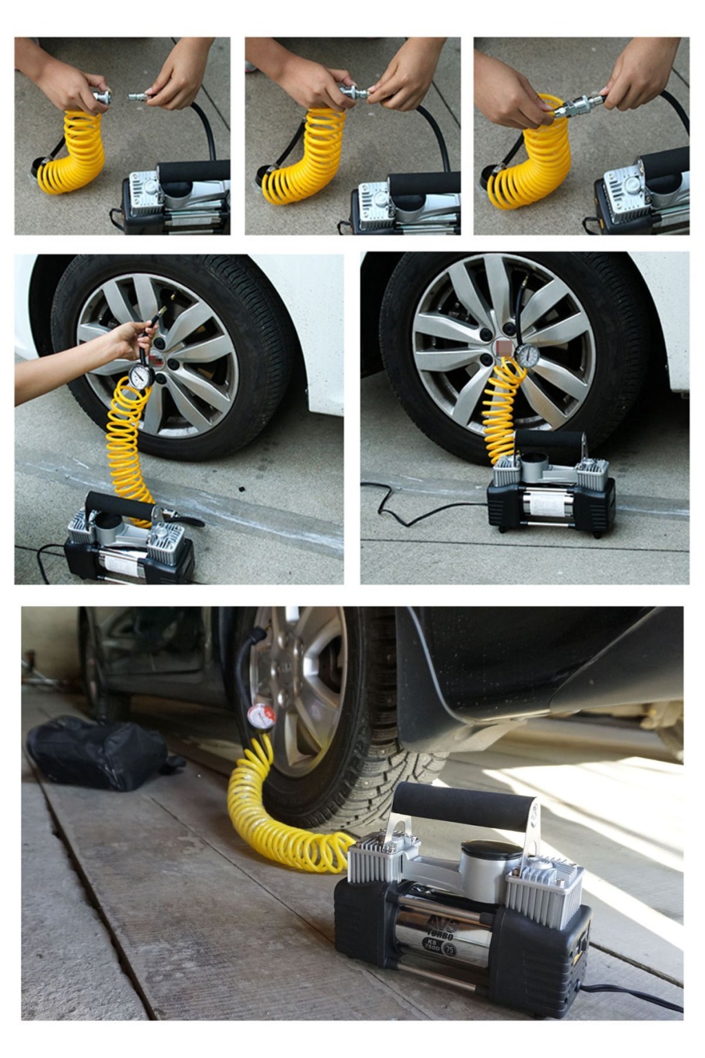 Bu çift pistonlu taşınabilir kompresör , yüksek hava basma kapasitesiyle otomobil, SUV, motosiklet ve bisiklet lastiklerinizi kısa sürede şişirir. Dayanıklı gövdesi ve güçlü motoruyla uzun ömürlü kullanım sunar.