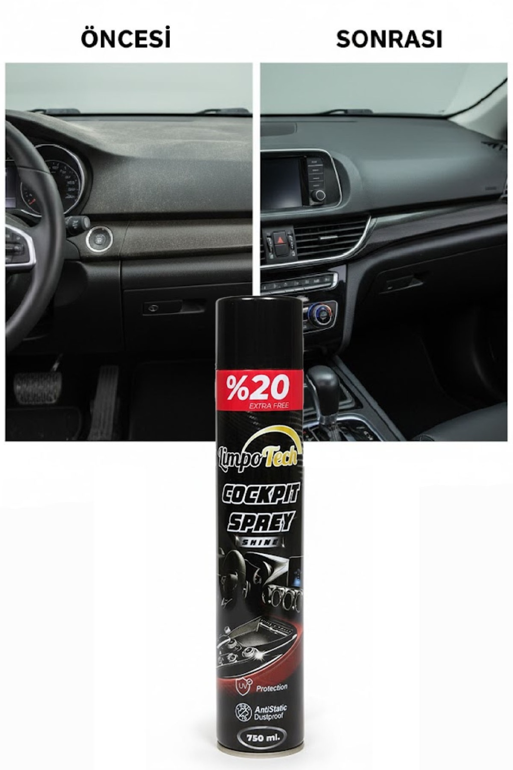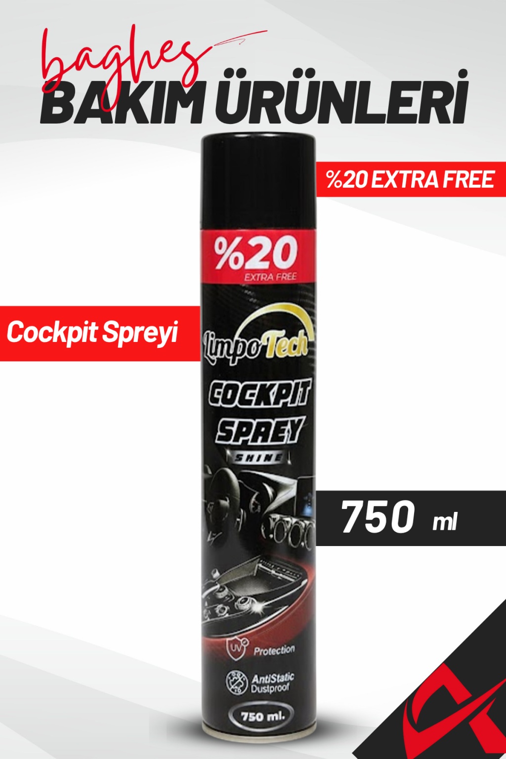 Cockpit Sprey 750 ml, torpido, kapı içleri, panel ve plastik yüzeylerde etkili temizlik ve parlaklık sağlar. UV korumalı formülü ile solmayı önler, hoş bir koku bırakır ve aracınızın iç mekanını uzun süre temiz ve bakımlı tutar.