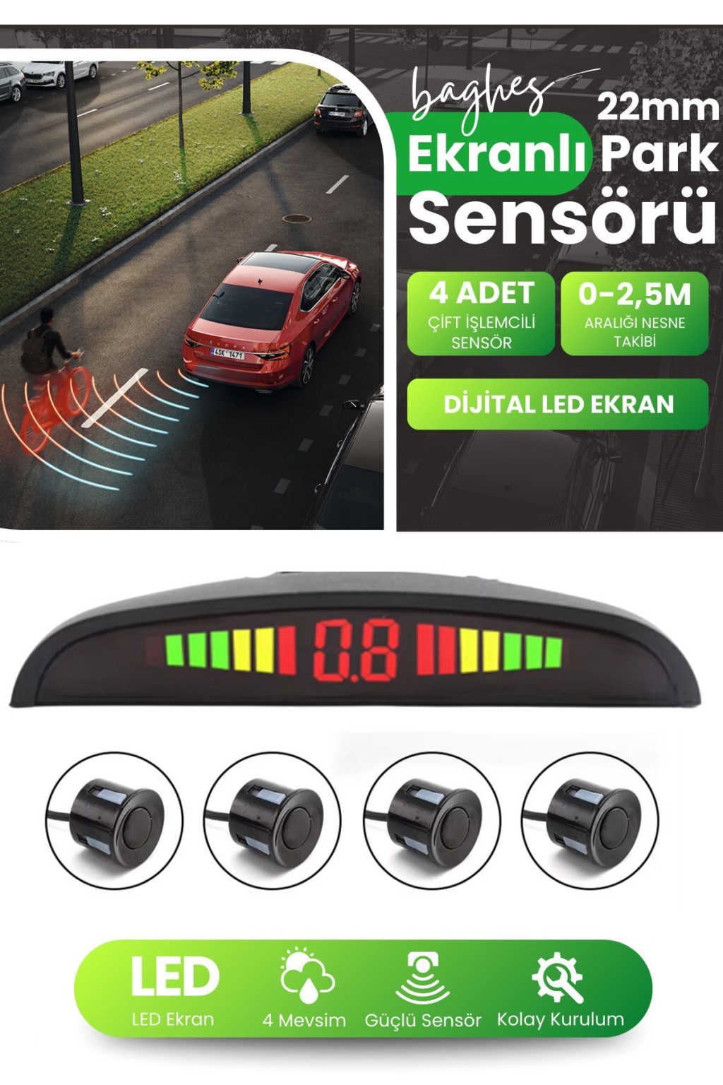 sesli ikaz sistemi ile aracınızı çevredeki engellere karşı korur. Şık ekran tasarımı sayesinde mesafeyi anlık olarak gösterir ve sürüş güvenliğinizi üst seviyeye çıkarır.