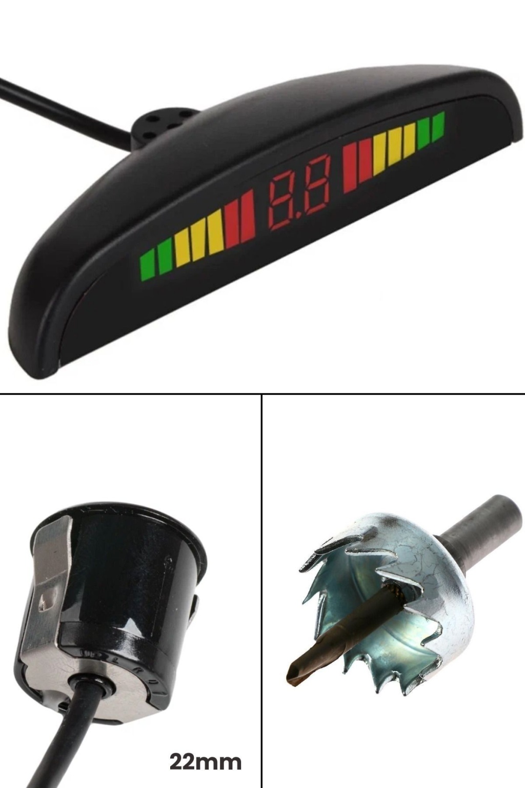 dijital ekranlı park sensörü, 22mm siyah sensör gözleri ve