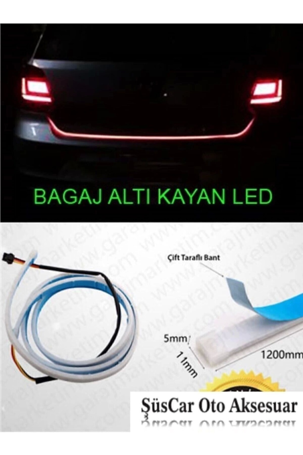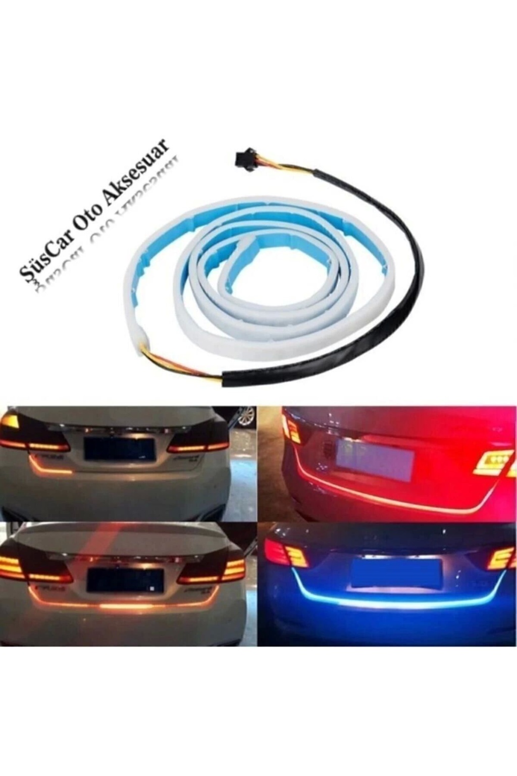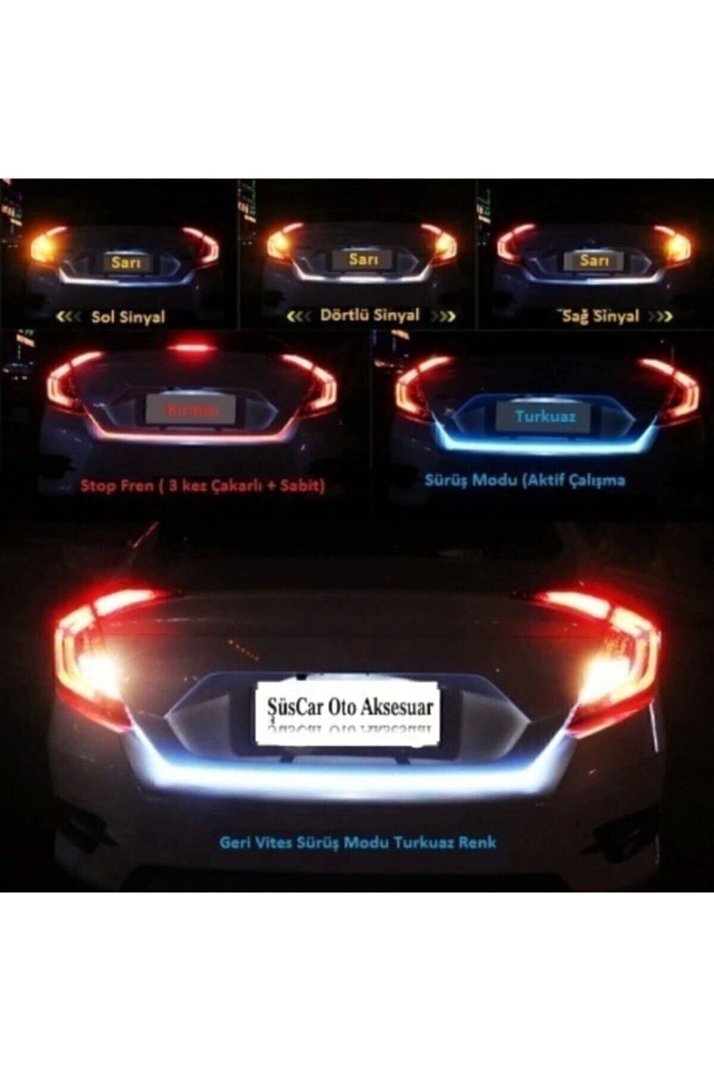 7 Renkli Fonksiyonlu Bagaj Altı Kayar Kayan Led Su Geçirmez 120Cm Her Araca Uygun Bagaj Altı Kayan Led ; Kolay montaj ; 98 Adet LED ; 5 Modlu Modül (sağ sinyal-sol sinyal - 4 lü sinyal- geri vites- fren) ; Işık kaynağı: LED şeritler ; Gerilim: 12 volt ; Renk: Birden Fazla Renk Seçeneği ; Uzunluk: 120cm ; Bagaj Altı Kayan LED Fonksiyonlar Fren: Parlak Kırmızı Işık ; Geri Vites: Beyaz Işık ; Sol Sinyal: Sola Kayan Led Şeridi ; Sağ Sinyal: Sağa Kayan led Şeridi ; Dörtlüler: Ortadan Aynı Anda Sağ ve Sola Kayan Çift Yönlü Sarı Led Işık ; Parklar: 7 çok renkli Rgb Led.; ; ŞüsCarOto ; ÜCRETSİZ KARGO ;