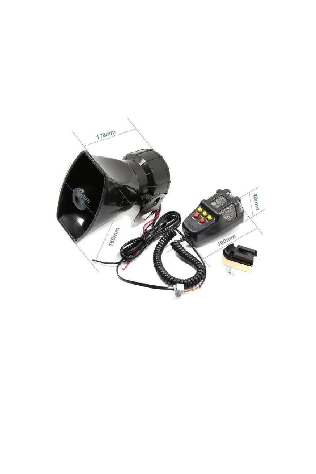 100W GÜCÜNDE , 12 V İLE ÇALIŞIR. ; 5 TUŞLU Mikrofonla konuşabilme 5 değişik siren tonu Açısı ayarlanabilir montaj ayağı 5 düğmeli 1adet mikrofon ,ana ünite ve siren,bağlantı ayakları ve kabloları ultra güce sahip ,polis,ambulans,makam aracı,eskort vb araçlarda kullanıma uygun üretilmiştir. ; 5 değişik ses versiyonuyla istenileni sunmaktadır. ; Mikrofonla sesli ikaz ve konuşma yapılabilmektedir;
