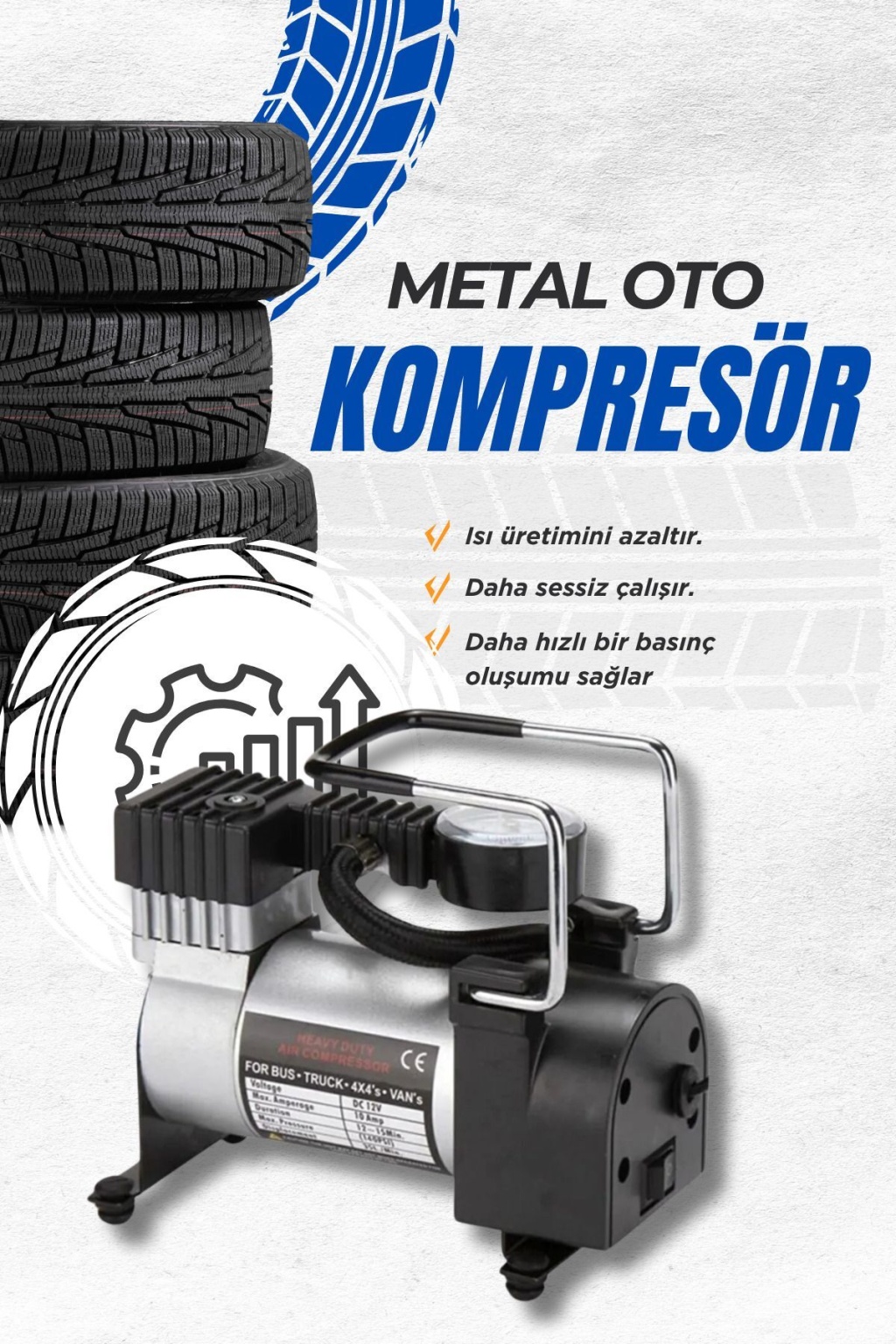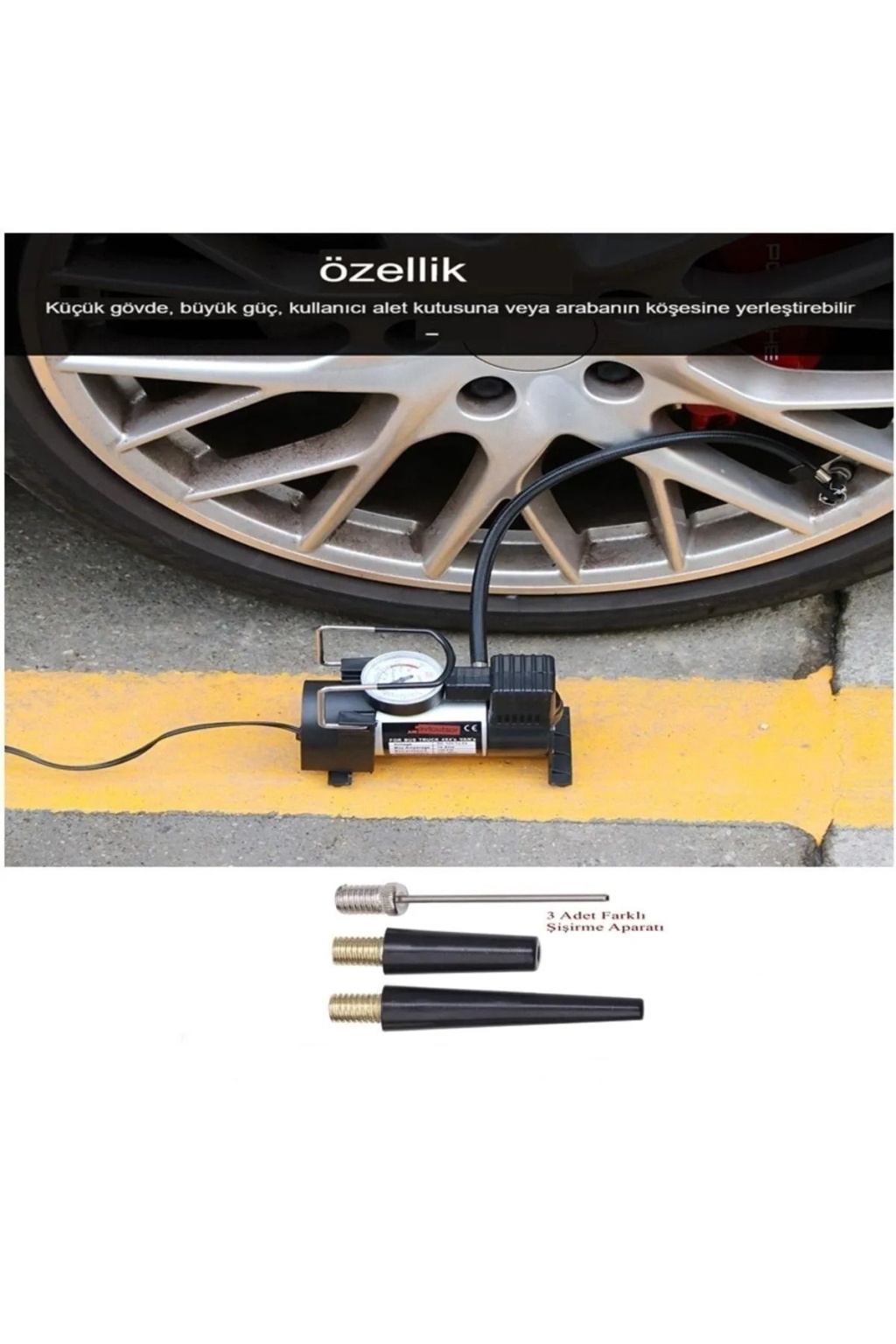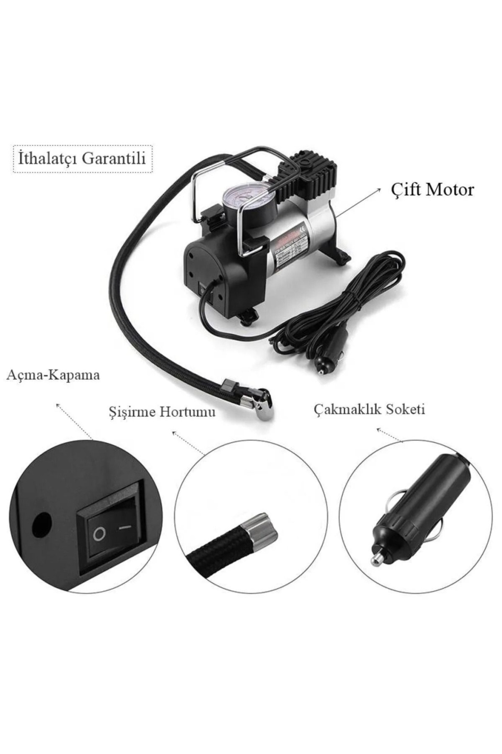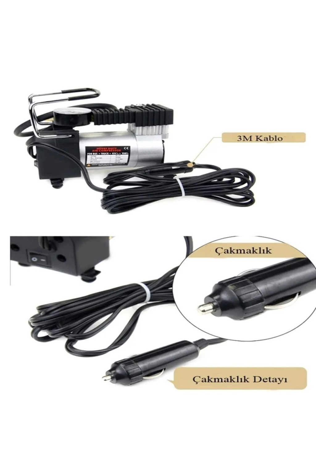 Metal Gövdeli Oto Lastik Şişirme Pompası – 12V Araç Tipi Hava Kompresörü (Çakmak Girişli)