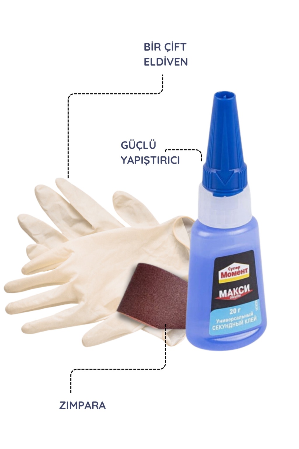 Set İçeriği: 8 adet lastik yazısı, 1 adet ultra premium yapıştırıcı, 1 çift eldiven ve 1 adet zımpara içerir.