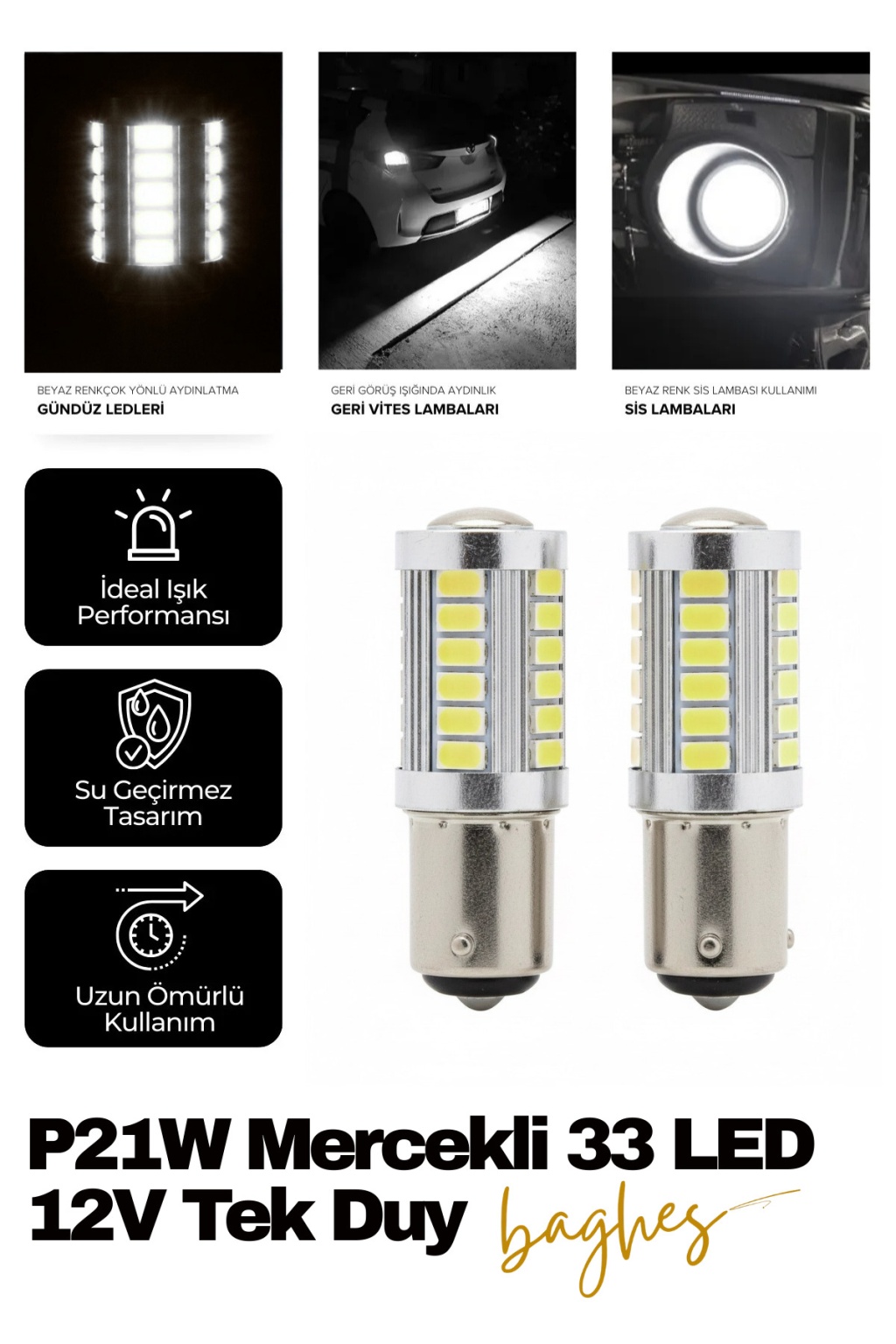 Yüksek verimlilikte aydınlatma sağlayan 33 LED'li mercekli LED ampul, gece sürüşlerinizde mükemmel görüş imkanı sunar ; Universal uyumluluk özelliği ile çeşitli araç marka ve modellerine kolayca monte edilebilir ; böylece aracınızın sinyal sistemi için ideal bir yedek parça olarak öne çıkar ; 12 volt tek duy düz tırnak yapısı sayesinde, aracınızın elektrik sistemine sorunsuz entegrasyon sağlar ve montaj kolaylığı sunar ; Beyaz renkli mercek tasarımı ile net ve parlak sinyal ışıkları, trafikte güvenliğinizi artırır ;