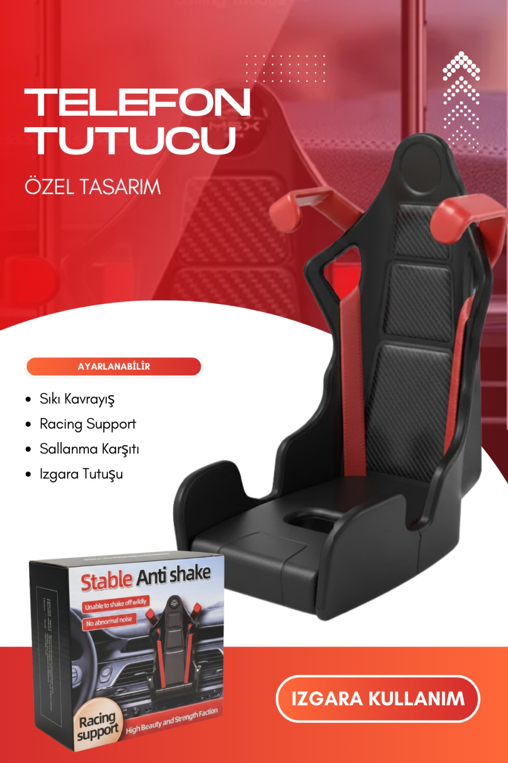 • Bu araç içi telefon tutucu, ergonomik ve şık yarış koltuğu tasarımına sahip benzersiz bir üründür.