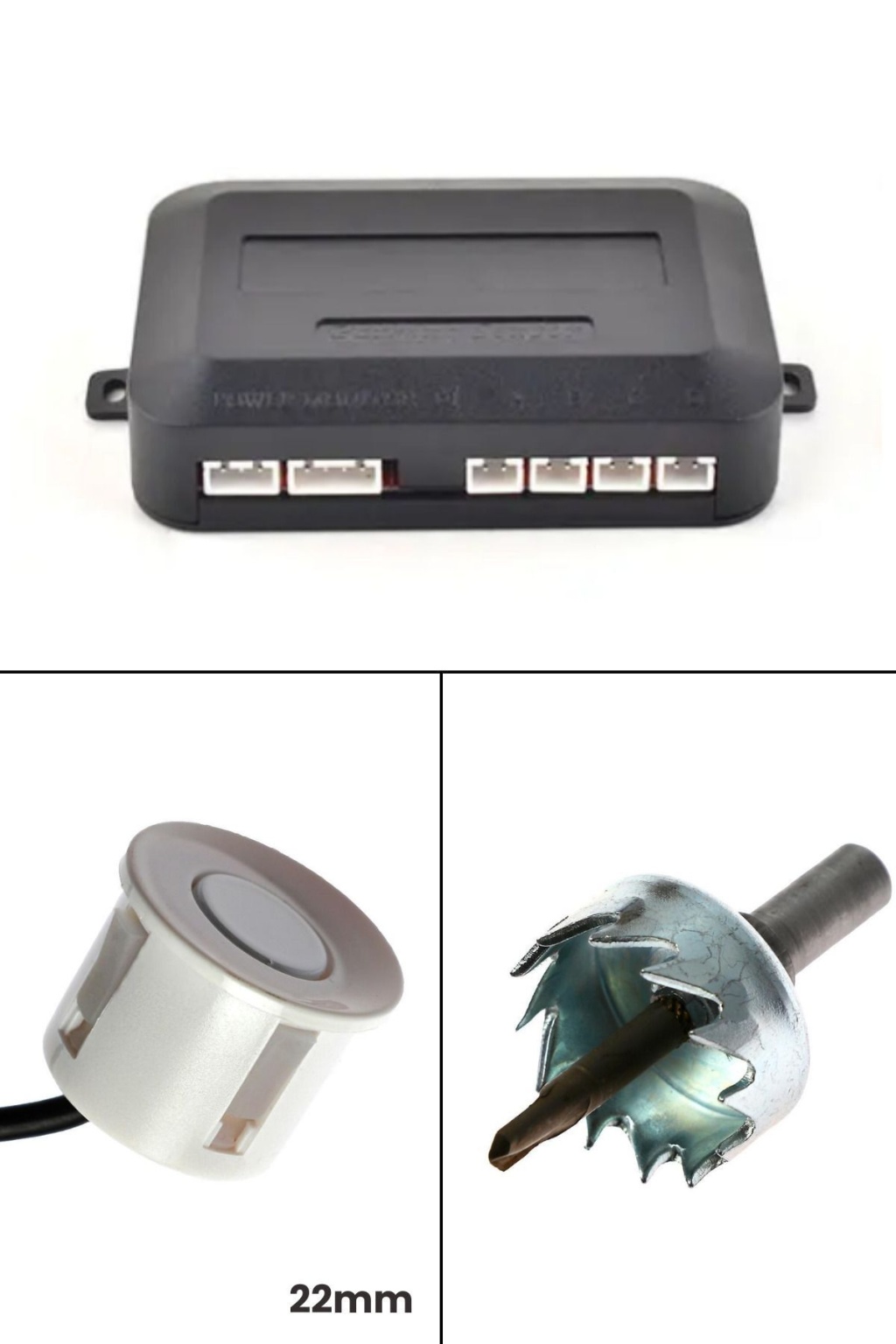 Sesli Araç Park Sensörü, 22mm beyaz sensör gözleri ile park ederken engelleri algılar ve bip sesiyle sizi uyarır. Üniversal uyumlu yapısı sayesinde tüm araçlara kolayca monte edilebilir.