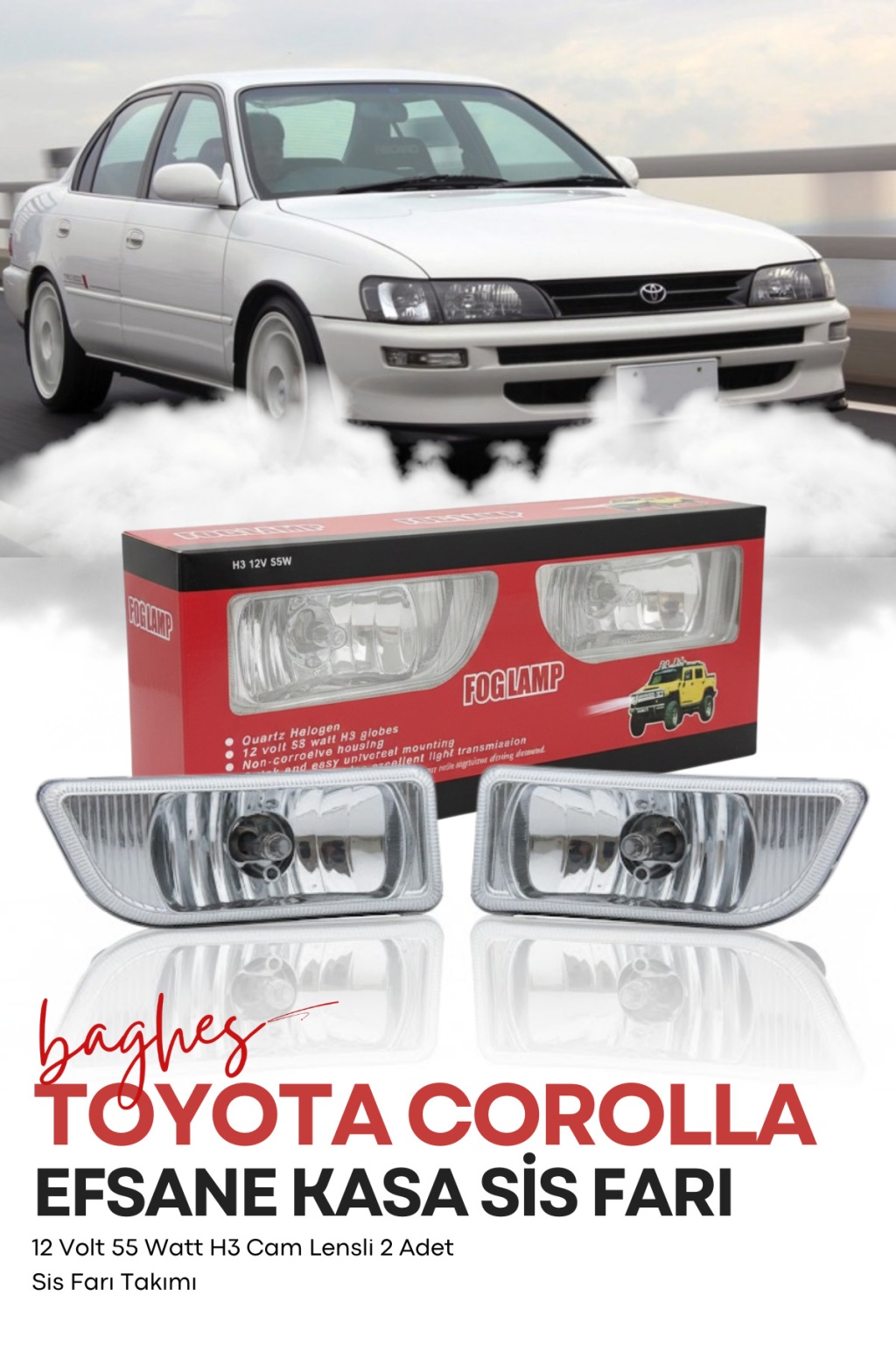 Çalışma Voltajı: 12 Volt.; ; Ölçü: 13 x 5,5 cm.; ; Ampul Tipi: 12 Volt H3 55 Watt.; ; Sis Farı Cam Rengi: Beyaz.; ; Carub 12V Sis Lambası Toyota Tip Beyaz (Emark Belgeli); ; Sis farının ölçüsü ve şekli itibariyle aracınızda buna uygun yeri olması gerekmektedir.; ;
