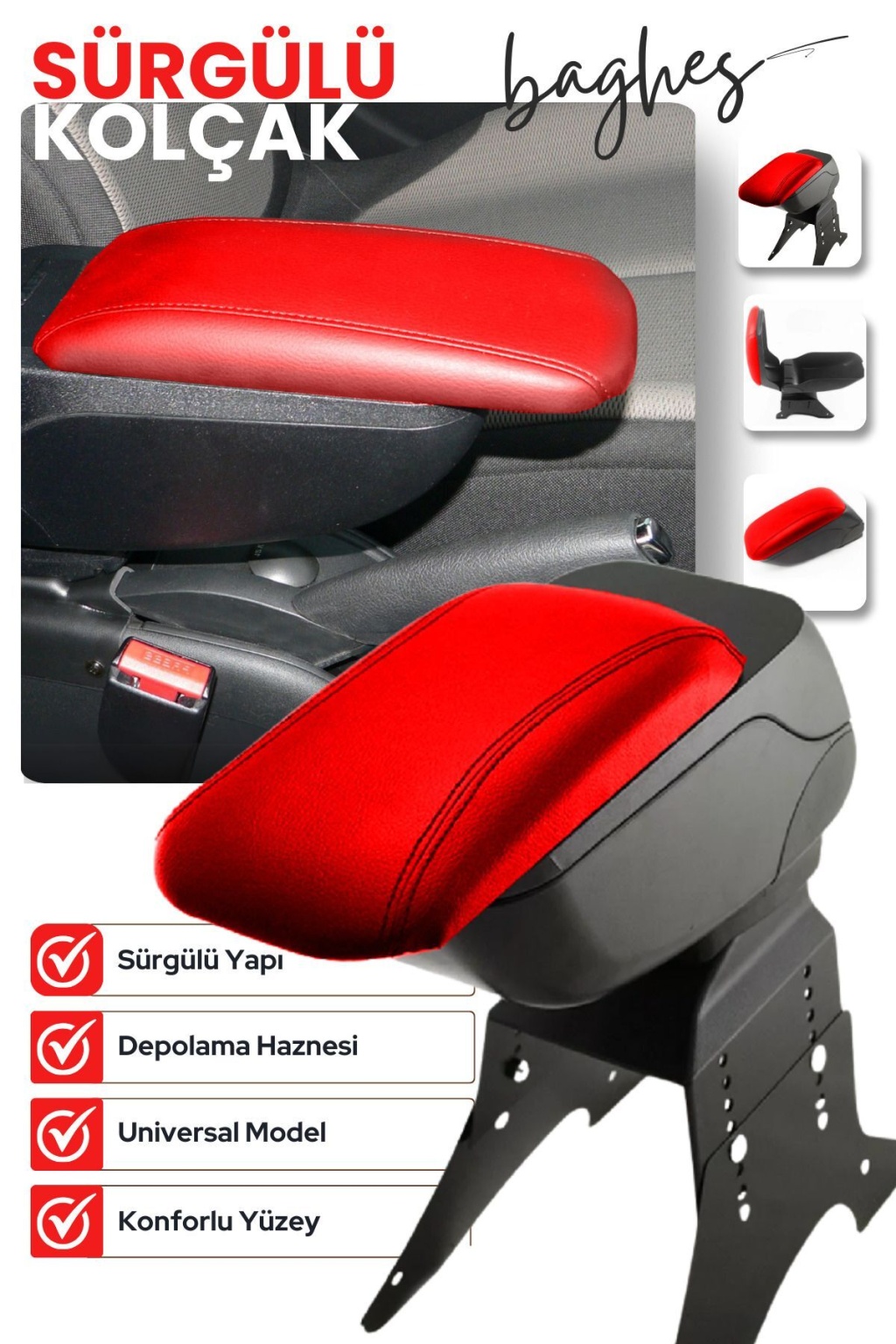 Bu üniversal sürgülü kolçak, kolay montajı ve geniş iç hacmi ile hem rahat bir sürüş hem de ekstra saklama alanı sağlar. Kırmızı dikişli şık tasarımıyla aracınızın iç mekânına sportif bir dokunuş ekler.